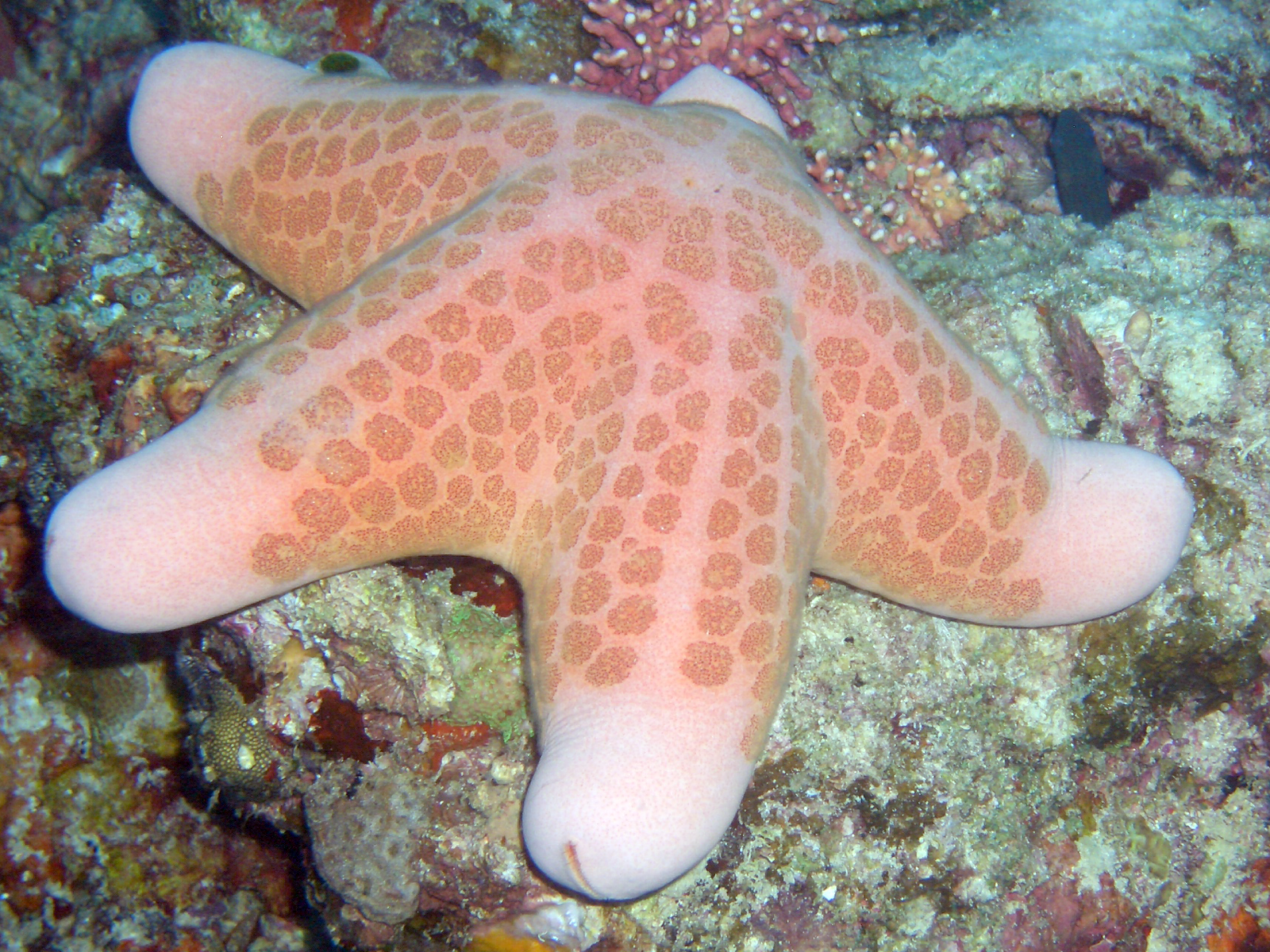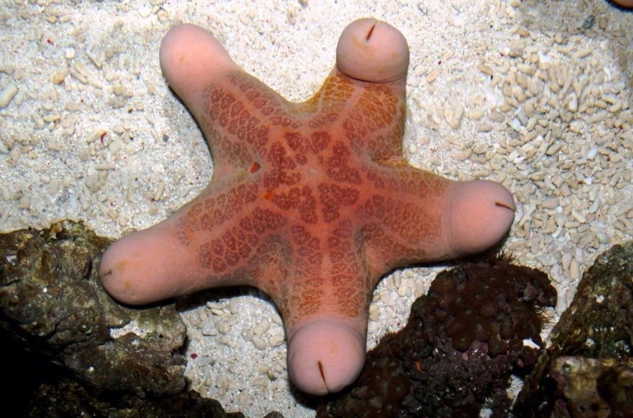Гребешковая морская звезда Choriaster granulat­us обитает на кораллах у берегов Австралии, Китая, Индонезии, западной Африки и во многих других местах. Мне интересно, что она натворила в прошлой жизни, что возродилась в таком виде?!