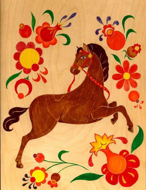 Правда, надо сказать, что если первоначально я следовала традициям городецкой росписи, то постепенно меня унесло совершенно в другом направлении, так что от городецкой росписи в моих работах не осталось ничего. Почти ничего.