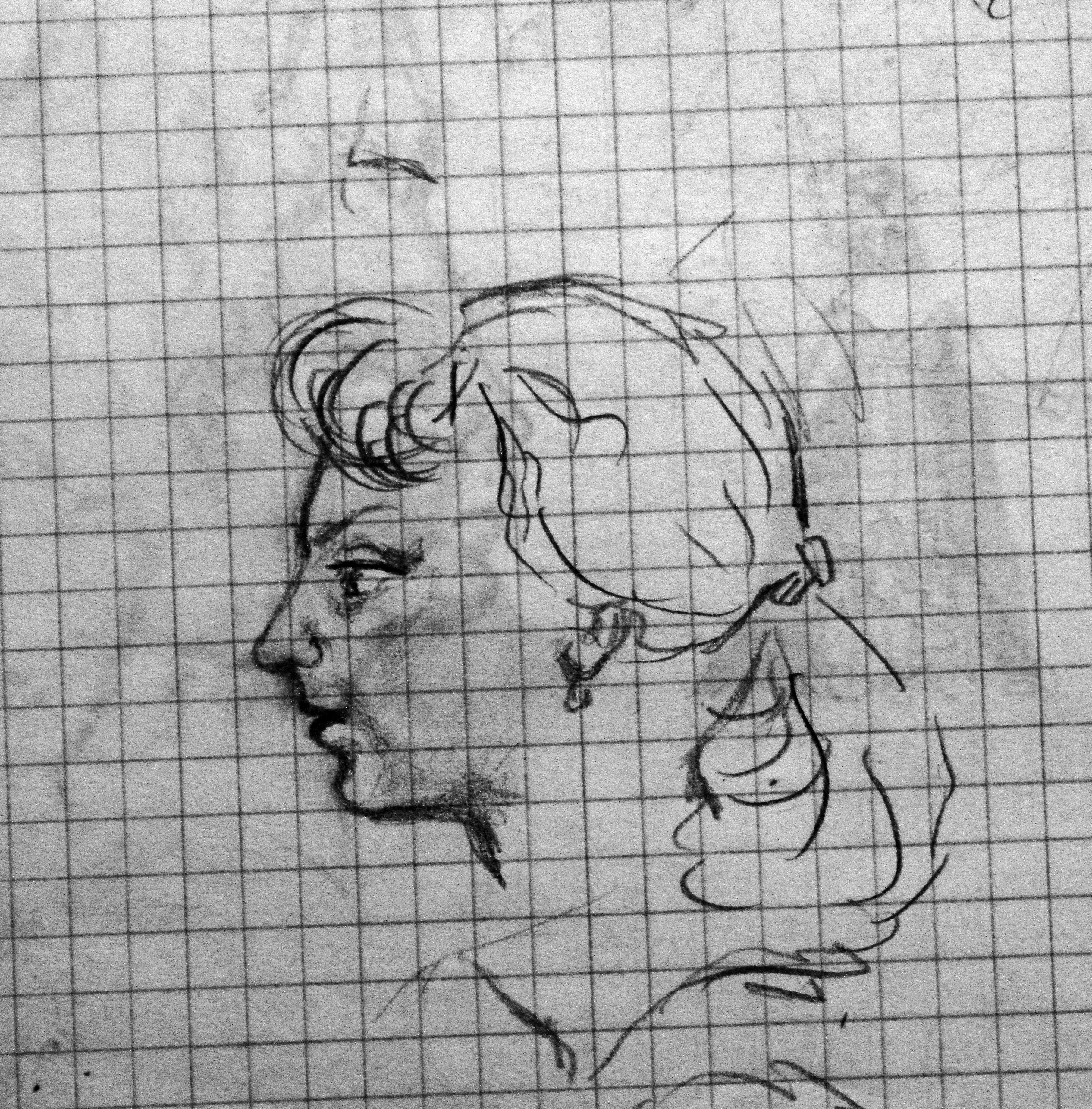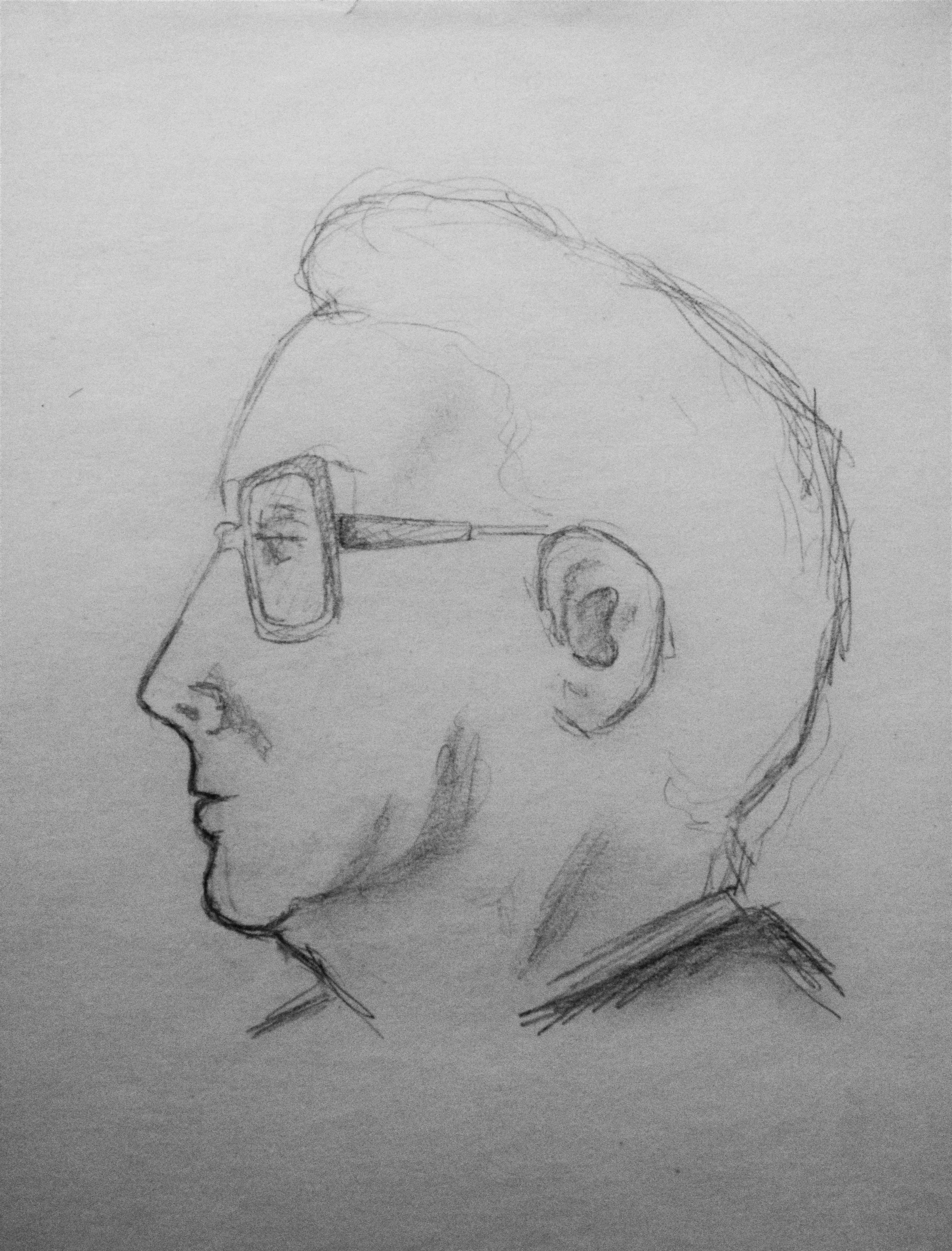 Но рисовать с натуры все же проще. Поэтому я периодически возвращаюсь к этому занятию. Портрет писателя Аарона Аппельфельда во время встречи с читателями (гелевая ручка).