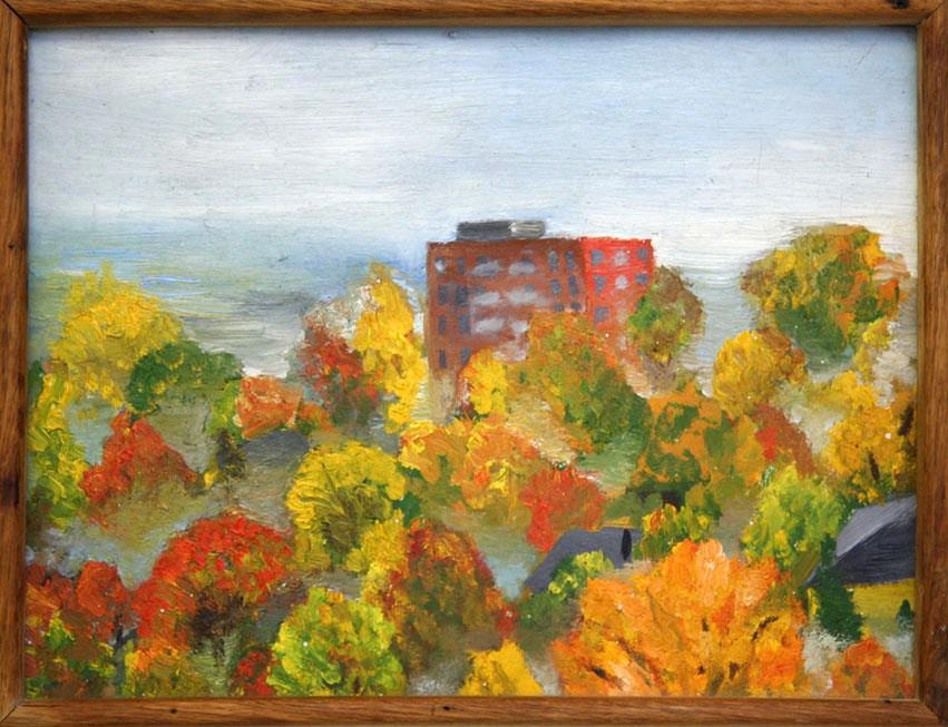 Простой карандаш, акварель, тушь и перо, уголь и сангина, масло, шариковые и гелевые ручки... Ниже мой набросок маслом — правда, этого вида из окна больше нет. Все застроено современными домами.