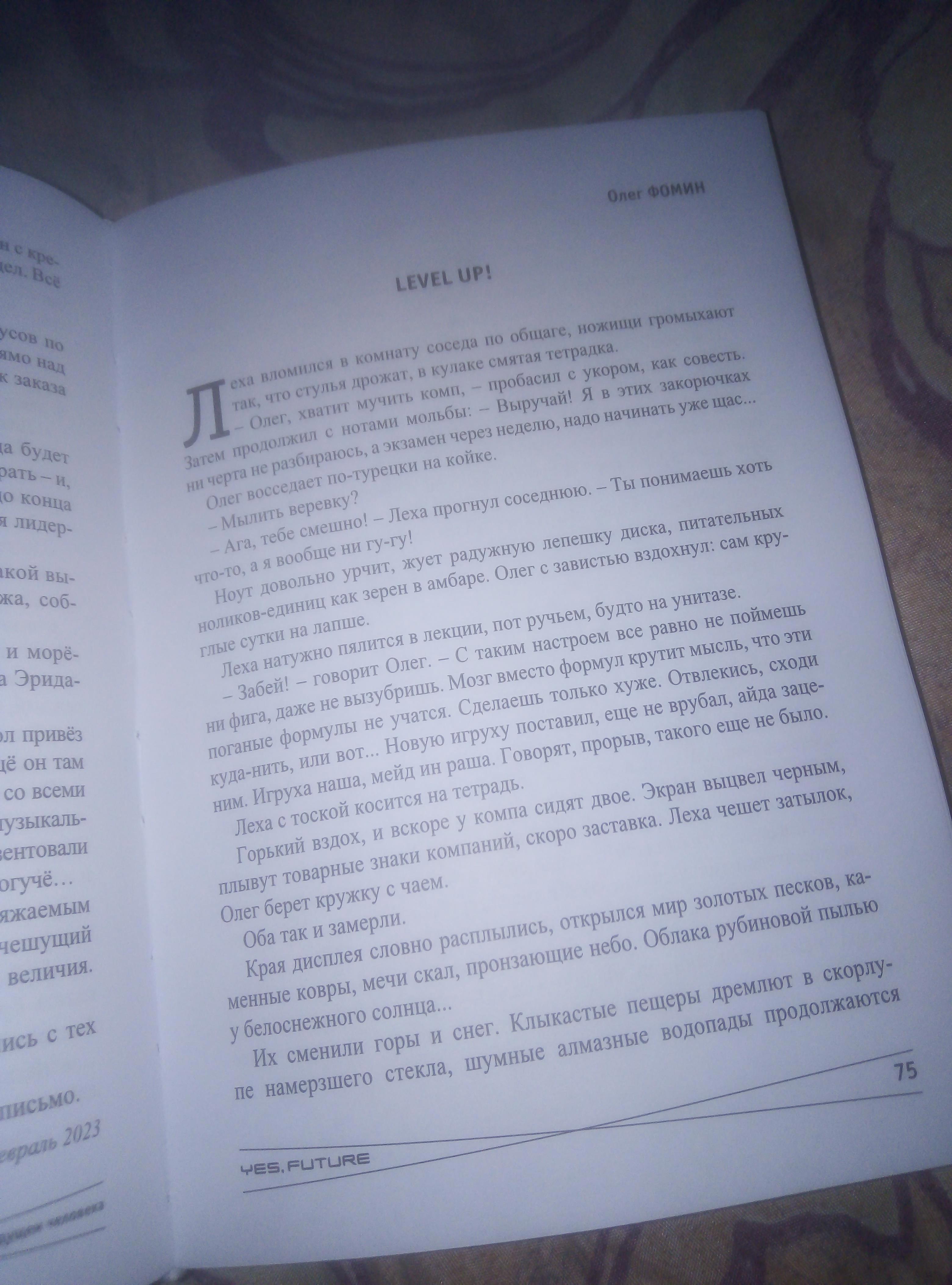 Издательство "Перископ-волга" выпустило еще один сборник с моим рассказом. Толстенький томик научной фантастики под названием "Yes, future" рассматривает перспективы ближайшего будущего. Надеюсь, в нем найдет место и приживется тот обучающий инструмент, что я описал в юмористическом рассказе "Level up!" 2011 года. Была бы такая штука в годы моего студенчества...