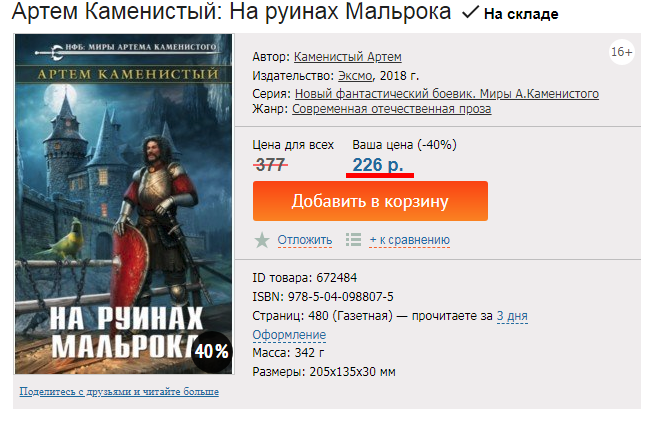 P.S. Действующая скидка в "Лабиринте" доступна всем покупателем (даже тем, кто пришёл впервые), да и распродажи там действуют периодически, так что то, что 226 рублей - это акционная цена, мало на что влияет.