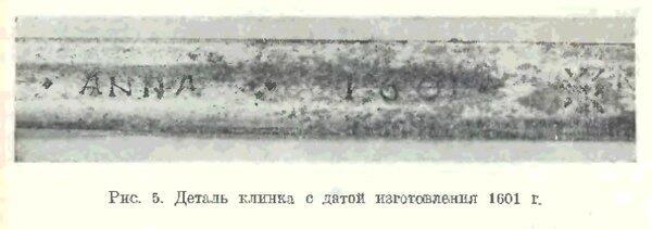 А вы наклонитесь поближе к витрине, и рассмотрите клинок повнимательнее. Возле рукояти вы увидите четкую надпись латинским шрифтом: «ANNA * 1601» и клеймо мастера.