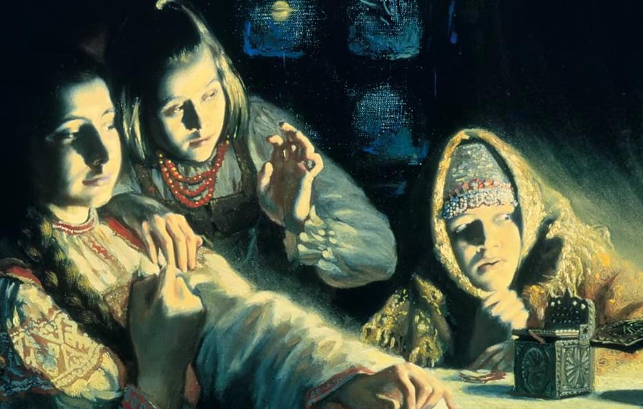 Девушки зимнею ночью гадали,