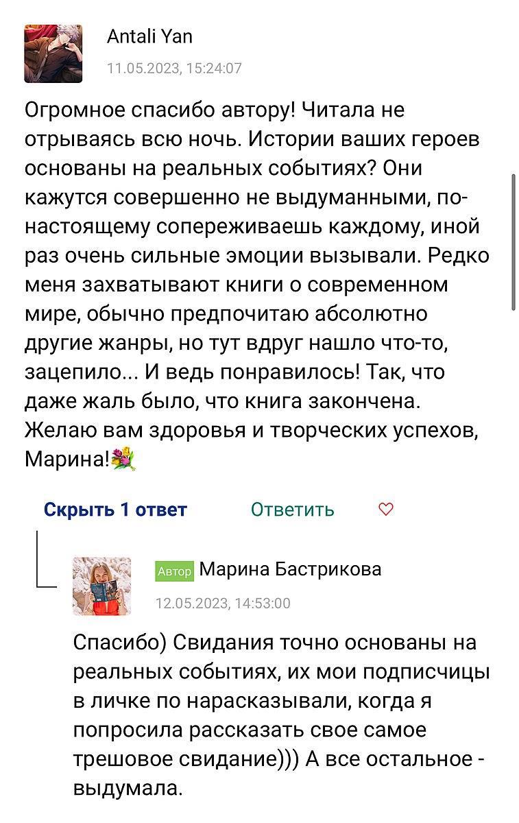 За что люблю СЛР, так это за возможность НЕ выдумывать))) Я могу просто задать вам вопрос и добавить один или несколько из ответов в книгу. И это определенно идет на пользу истории!