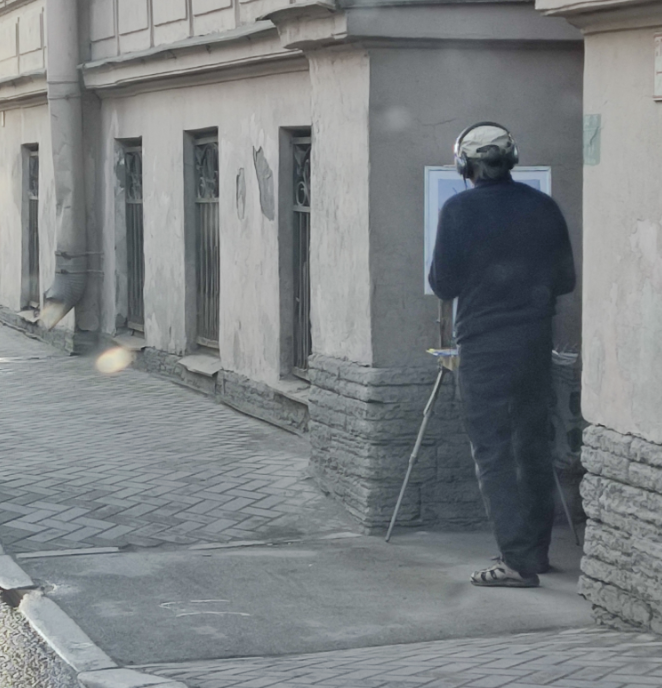 Автор: MorcelebСегодня шел с работы, подхожу к машине, вижу рядышком в подворотне художник притаился.