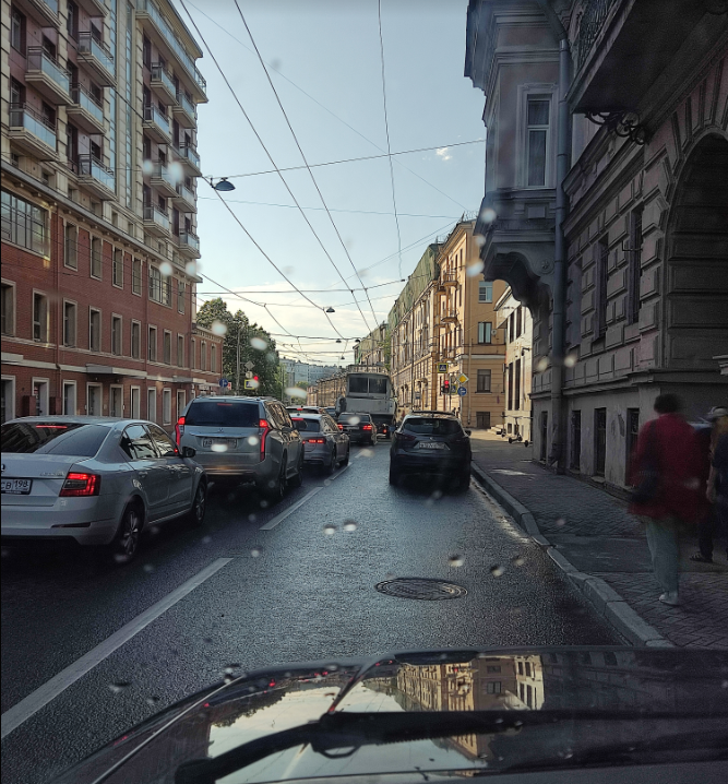 На картине дома справа - прямо золотые, залитые светом, без ремонтных сеток, на каштанах куда больше свечек, чем в реальности, а небо чистое, не исчерченное проводами. Я поехал и думаю - наверное, будь я художником, я бы рисовал с моста Бетанкура - реку, всю в вечернем солнце, пришвартованный за деревьями корабль возле кутузовской, мост, из-за солнечного света кажущийся невесомым...