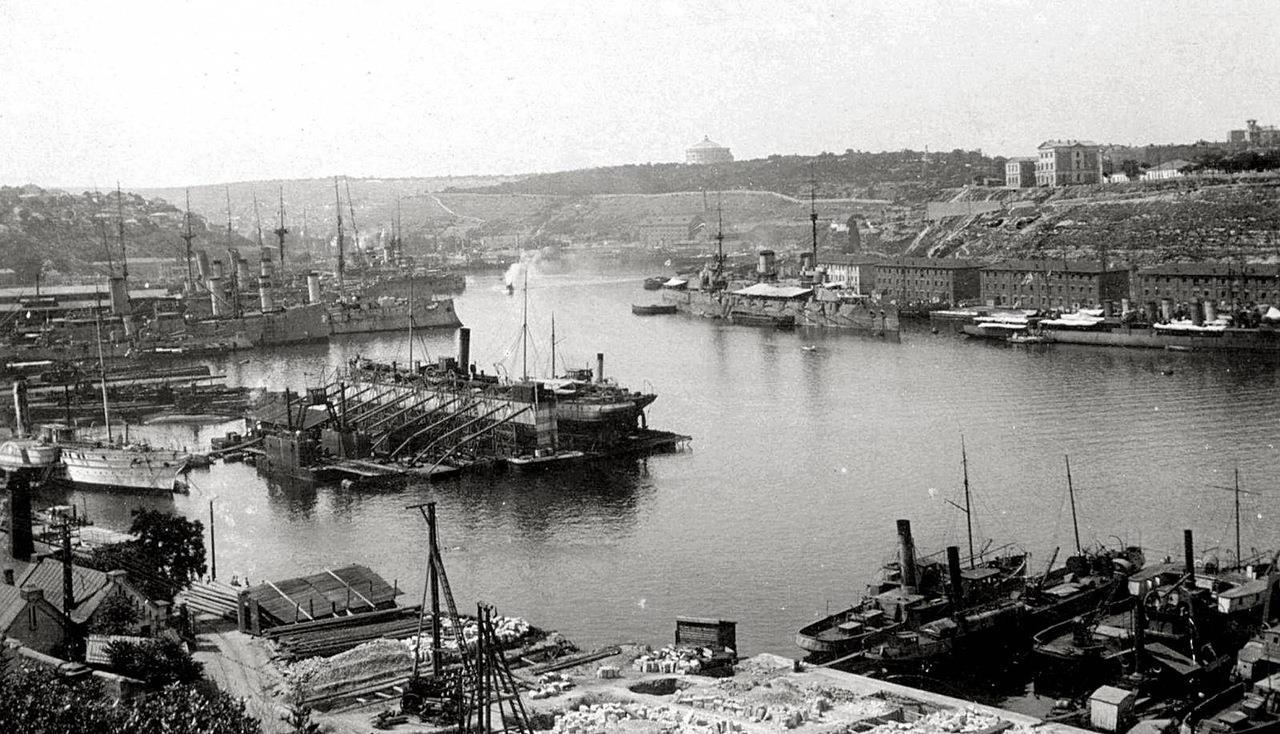 Южная бухта Севастополя и броненосцы ЧФ.