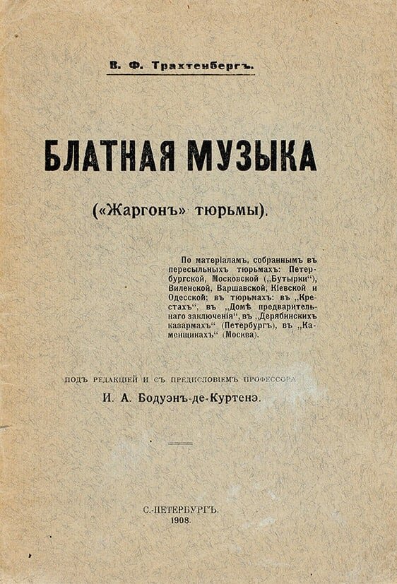 Блатная музыка (Жаргон тюрьмы). Словарь. Трахтенберг В.Ф. — С.-Петербург: типография А.Г. Розена, 1908.