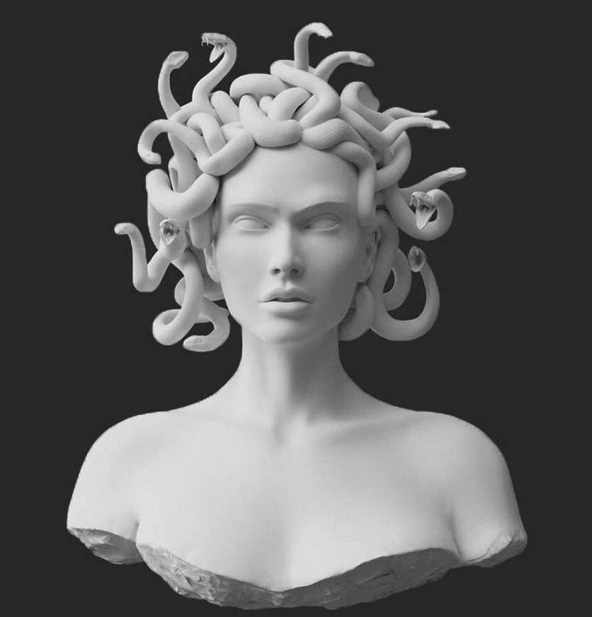 Да просто так. Она мне понравилась, и мне так захотелось. Взяла я эту картинку на просторах Интернета. Увы, автора определить не удалось. Именно на этой картинке, где Медуза Горгона представлена в виде бюста, она выглядит, на мой вкус, весьма красиво и эстетично.