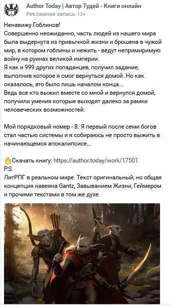 В принципе, нужно понимать, что у меня условия были почти идеальные - качественная и законченная первая книга, перевалившая за половину вторая, популярный жанр real-rpg, но при этом всего 1500 подписчиков и относительно малая известность в качестве писателя. В моем случае сработало отлично, у других эффект может быть меньше, но он тоже будет. И стоит ли рискнуть - пусть каждый решает сам. Однако если вы уверены в своей книге, то это быстрый и эффективный способ. Надеюсь, мой пост кому-то поможет.