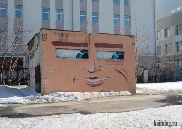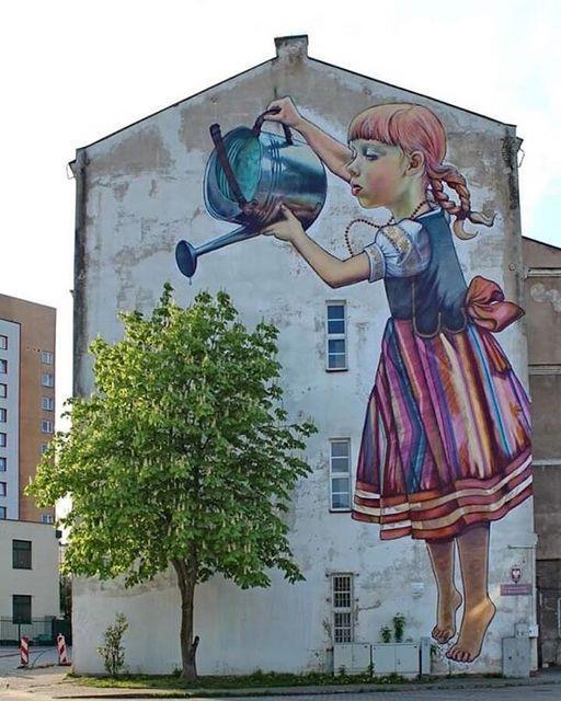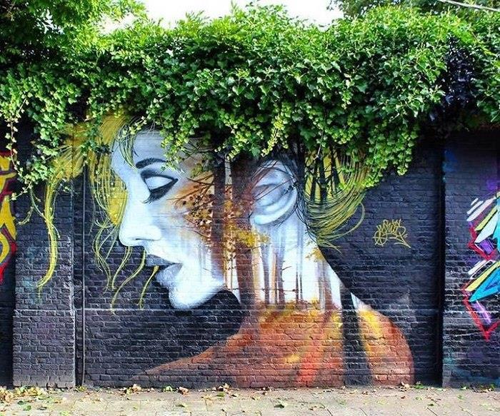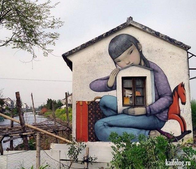 Мне очень нравятся граффити или муралы, которые органично встраиваются в окружающий ландшафт, обыгрывают его. Собрала тут некоторые.
