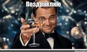 В фильме "Великий Гэтсби" герой Леонардо Ди Каприо Джей Гэтсби поднимает бокал с шампанским и очаровательно улыбается. Милый и добрый кадр. И вроде бы не должен был вызвать такое массовое распространение. Ан нет. Мем с этим кадром стал заменой поздравительным открыткам с цветочками-букетиками для всех случаев жизни и для людей всех возрастов.