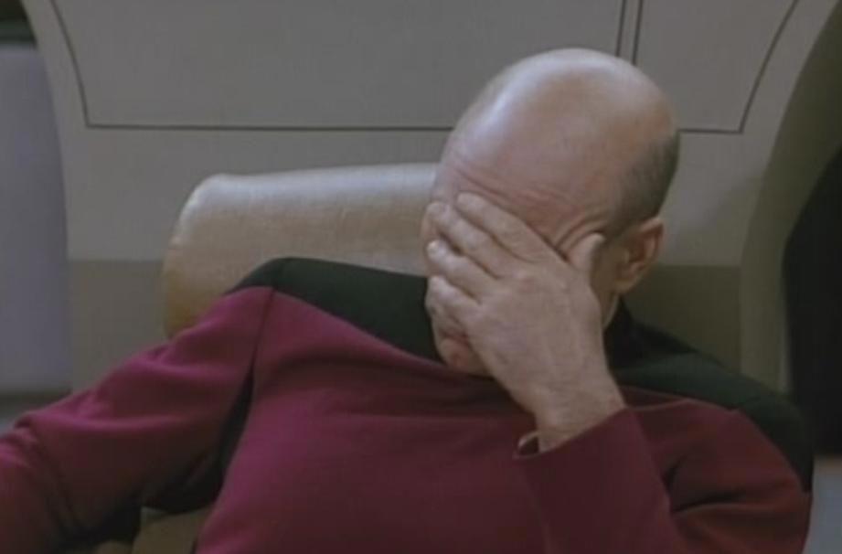 В фильме "Звёздный путь" Жан-Люк Пикар в исполнении Патрика Стюарта просто приложил руку к лицу. Обычный жест стал вирусным мемом. И этот мем используется в тех случаях, когда нужно выразить своё отношение к глупости или нелепости.