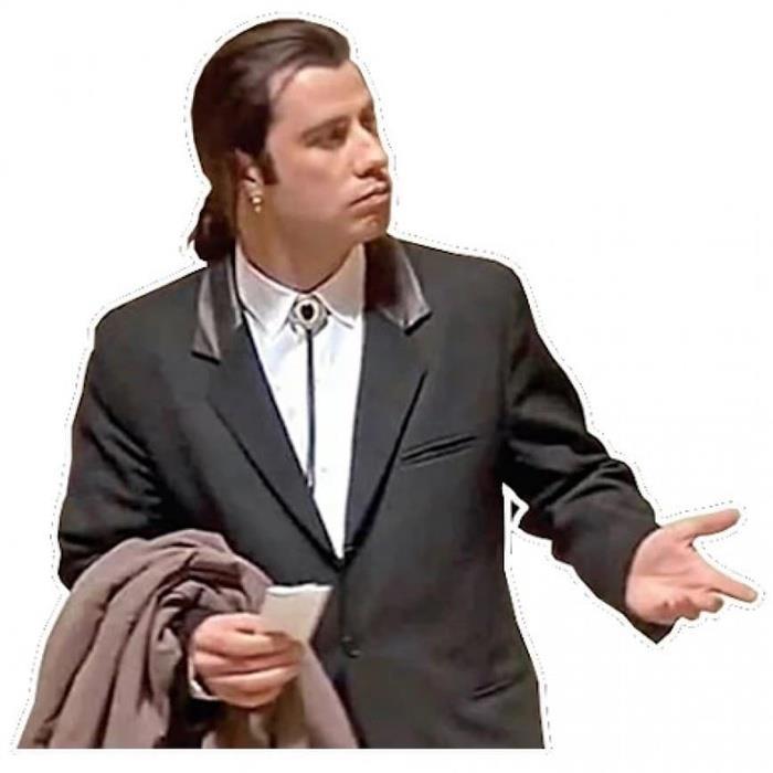 Винсент Вега в исполнении Джона Траволты в фильме "Криминальное чтиво" недоумённо озирается по сторонам. Этот мем используется в тех случаях, когда необходимо изобразить растерянность или непонимание. Ну или недоумение.