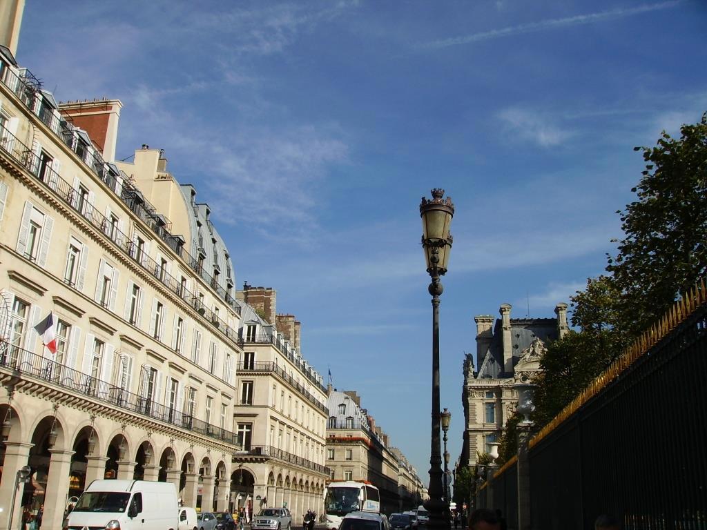 Проехав дальше, Денис перекусил в небольшом кафе под аркадами на улице Риволи, (на фото - слева)