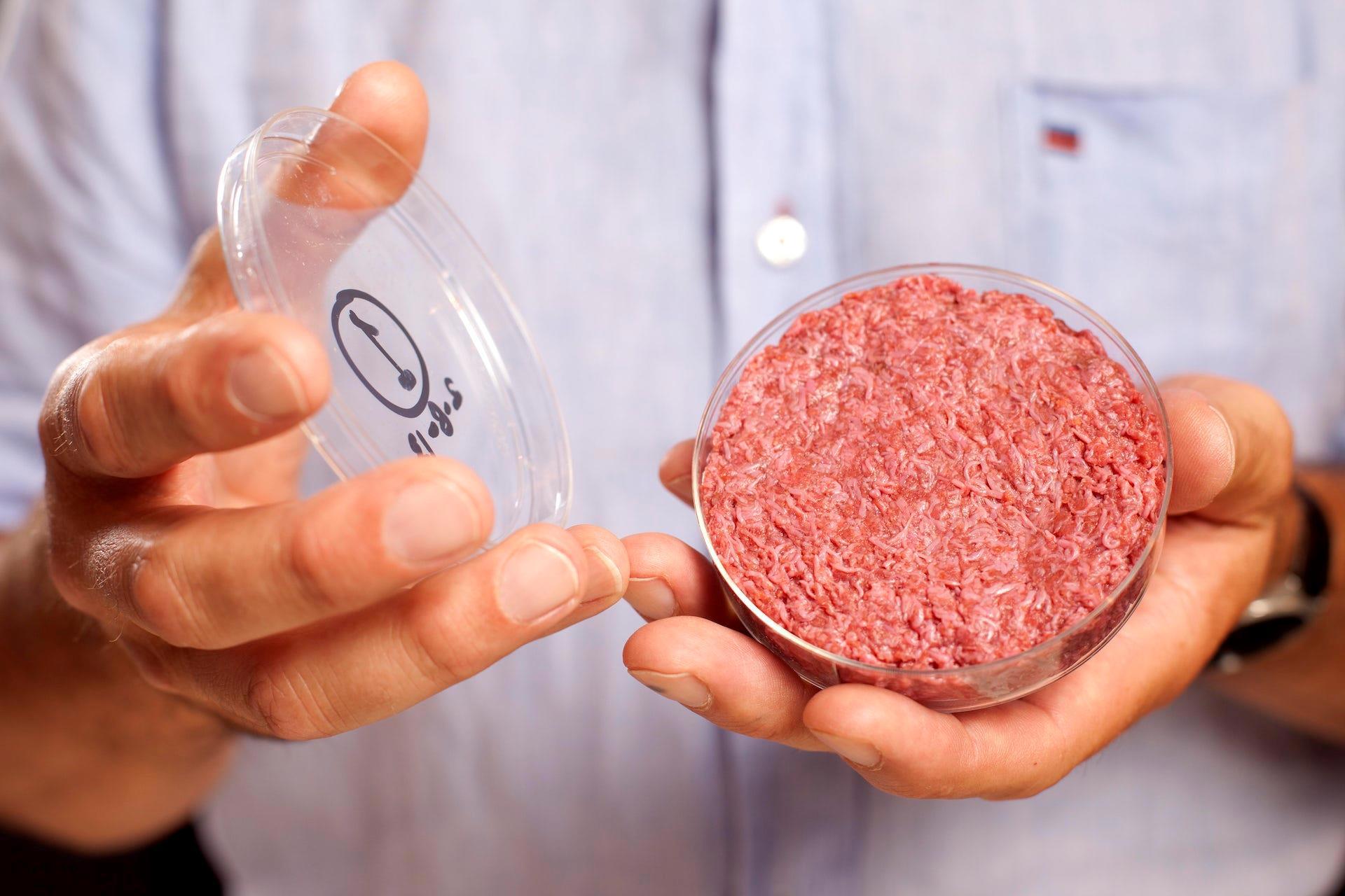 Выращивается такое мясо из стволовых клеток, и не в пробирке, а в чашках Петри. Это в лабораторном варианте. Практическое решение, это так называемые биореакторы, которые используются для выработки некоторых видов вакцин.