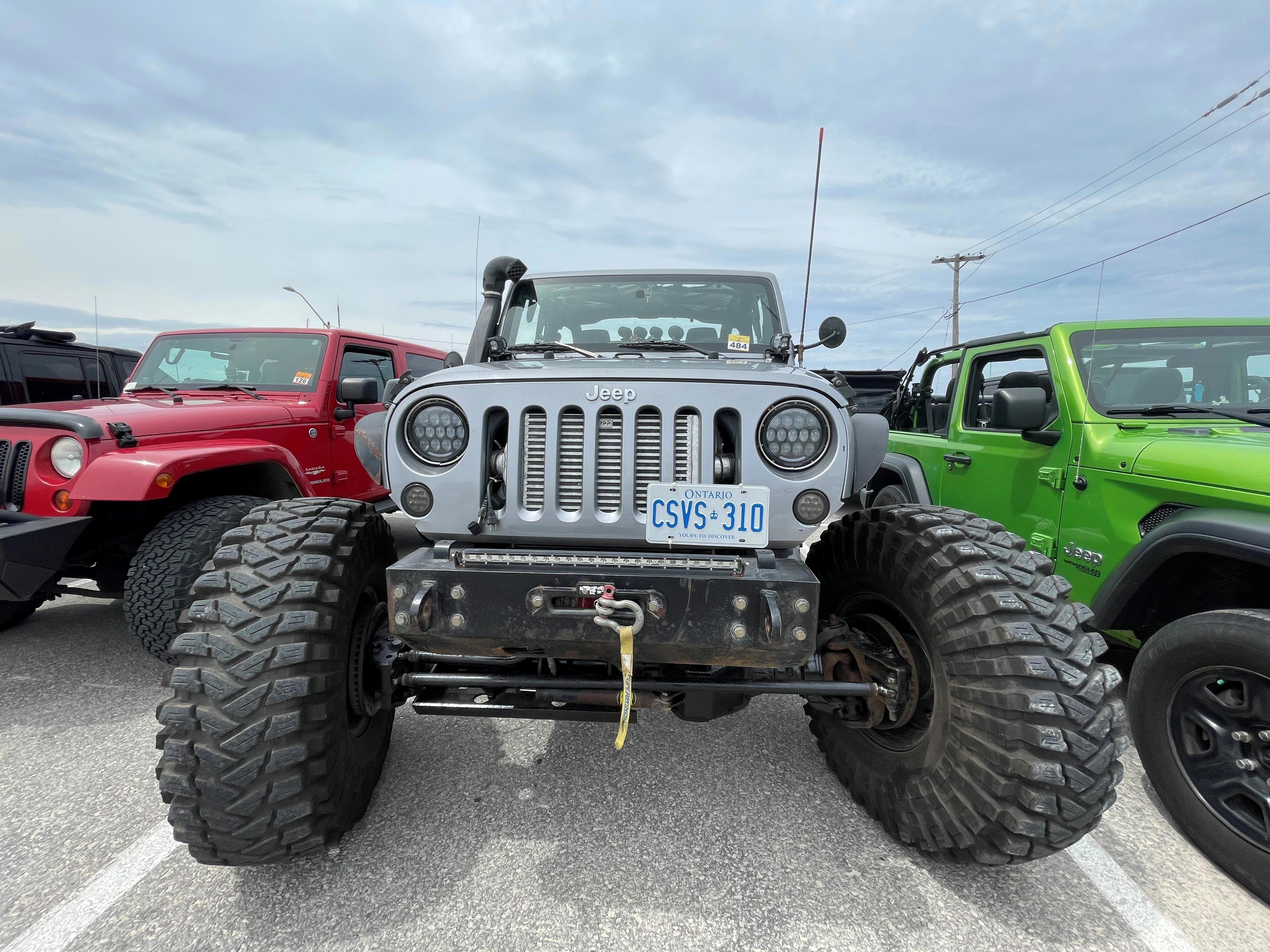 Приехало около пятисот (!) бричек в разных степенях модификации и тюнинга. Я с семьей бродил среди этих монстров с абсолютно дурацкой улыбкой на лице, хоть я и не большой фанатик. Но такая толпа единомышленников заведет кого угодно. Младшая заявила, что её первая машина будет непременно джип, розовый или сиреневенький, с глазками и ресничками, контакты девчачьего клуба джиписток Торонто уже себе записала. Осторожно начала интересоваться, где и как получить подвеску под тридцатидюймовые колеса.