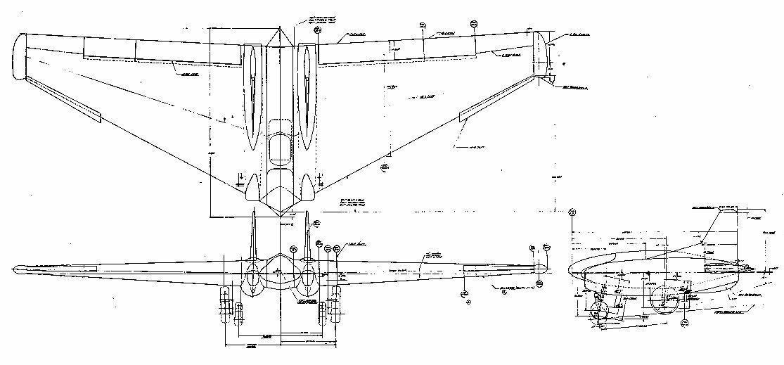 Ну а что же американцы? Ведь они не только имели возможность экспериментировать, но и с удовольствием этим занимались. В литературе можно встретить статьи про самолёт-таран фирмы Northrop, построенный по схеме «летающее крыло» XP-79B от 1945 года. Вот чертёжик этой машины: