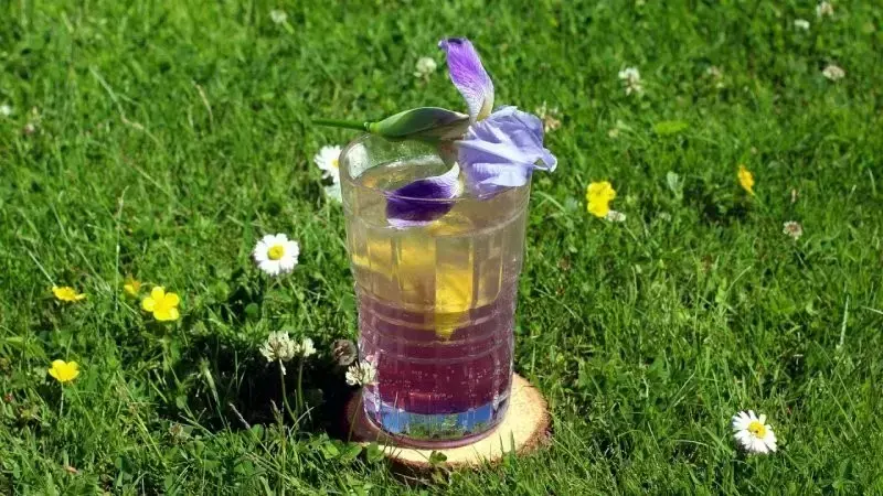 Смешайте 100 мл фиалкового сиропа с соком и цедрой 1 лимона.