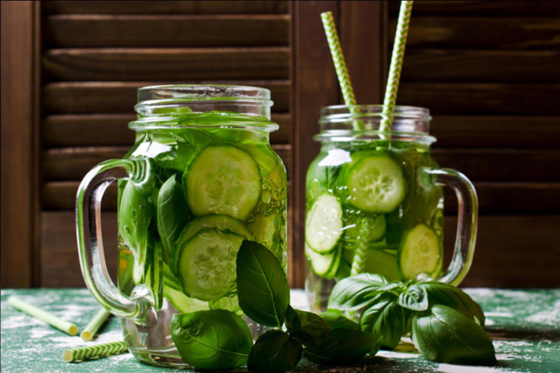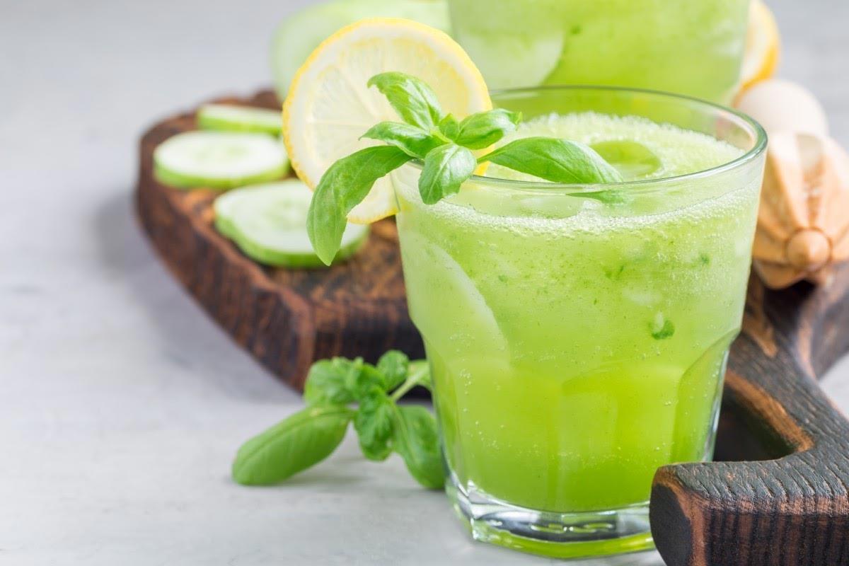 Отфильтруйте жидкость, добавьте 2 литра газированной воды, а также 1 огурец и 1 лимон, порезанные на кружочки. Подавайте со льдом.