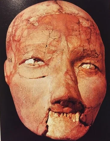 После смерти знатного человека, его голову отделяли от тела, избавлялись от "всего лишнего", а на череп наносили новое лицо - глиняную маску, расписанную красками и инкрустированную ракушками.