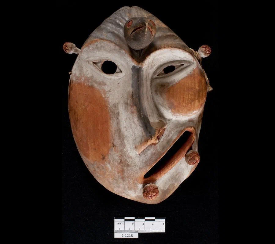 10) Керамическая маска народности юпик. Аляска, устье реки Юкон. В1938 году попала в коллекцию музея Орегонского университета.