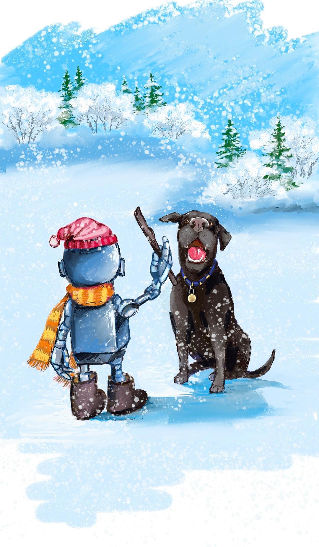 Собака на месте прокрутилась и раскопав вместо палки камень, снова у ног робота положила.