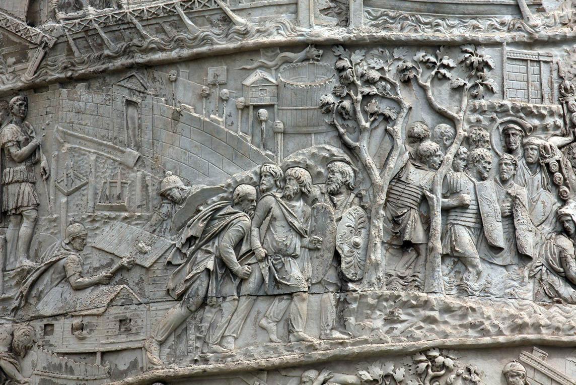 Но всё же далось римским бандитам это нападение не просто – несмотря на то, что силы были не равны, даки (они же «геты») оказали им серьёзное сопротивление. В боях на стороне даков участвовали также и сарматы. Вот они изображены на колоне: