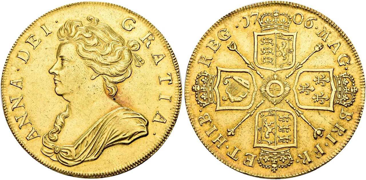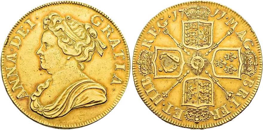 Анькины пять гиней. Гинея от слова Гвинея. Номинал нигде не указывался:)