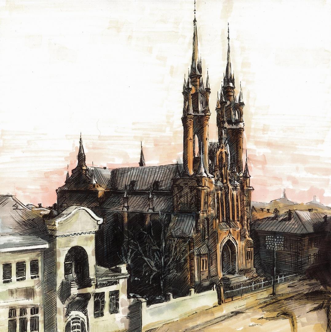 Талант, ручки, руки, бумага, маркеры, лайнеры и городские красоты