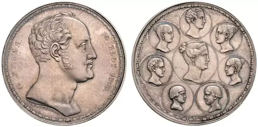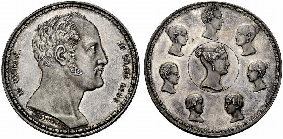 Практически истинный ариец николай (первосортный) палкин (губитель Пушкина) женился на истинной арийке и наделал истинных арийцев. Логично, что образцом для его так называемого «семейного рубля» 1835-1836 гг послужил талер полусумасшедшего Людвига. И оригинальный номинал: полтора рубля, они же - 10 злотых. Мы на Синконе продали таких три - по от 600 тысяч до миллиона с лишним доллеров за штуку:)