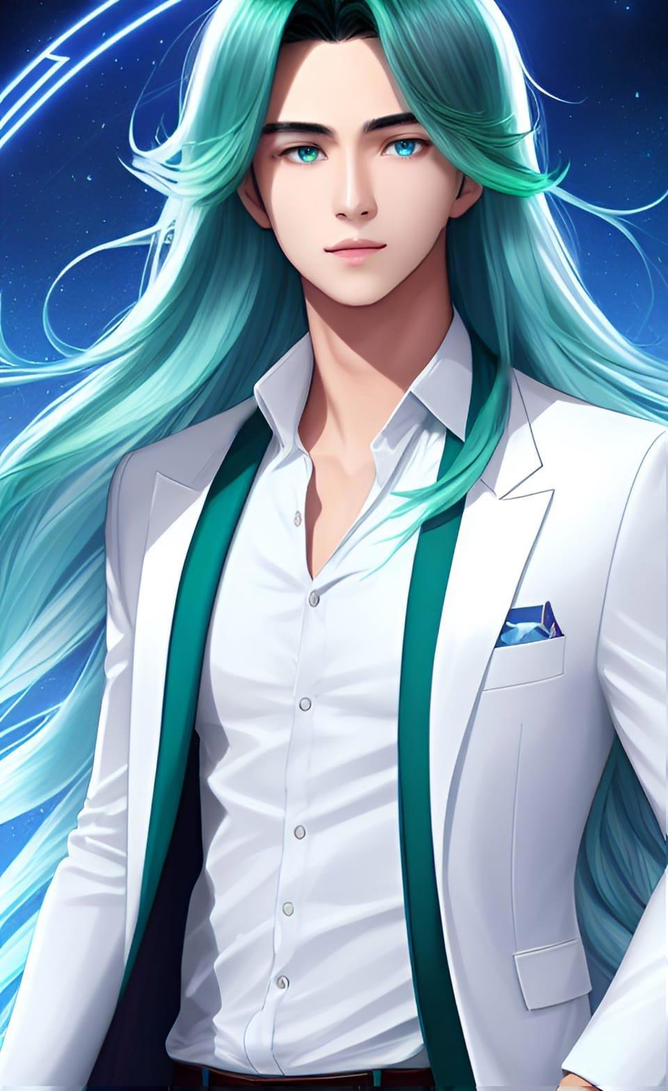 Распущенные волосы до плеч разного цвета, словно перья у птицы, синие и зеленые пряди вперемешку, а еще нереальные глаза разного цвета, синий и зеленый.
