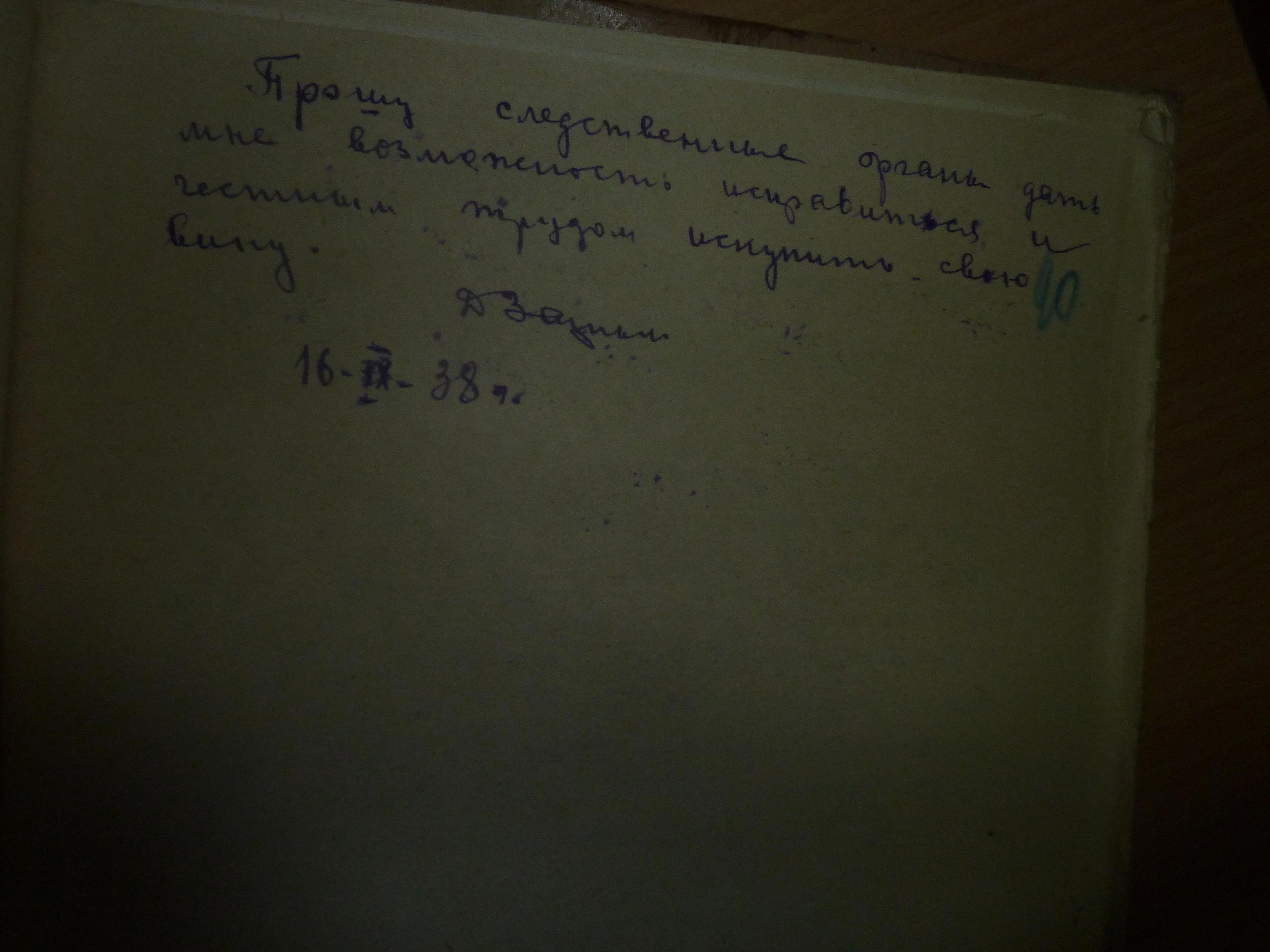 Арестован по обвинению в участии в правотроцкистской организации. Подписывал все документы и признавался. Дело содержит не только протоколы, написанные следователем, но и лично написанное заявление, что он кается и хотел бы искупить вину трудом. Обвинялся в преступлениях по ст. 54-8, 10, 11.