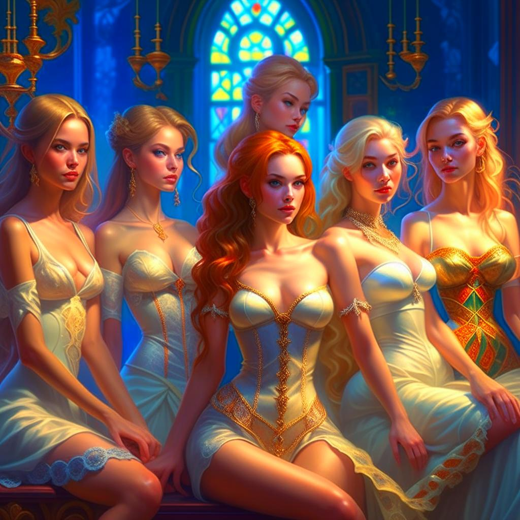 Фрейлины тут же зашевелились, томно изгибаясь и подставляя взгляду гостя свои самые выгодные части.