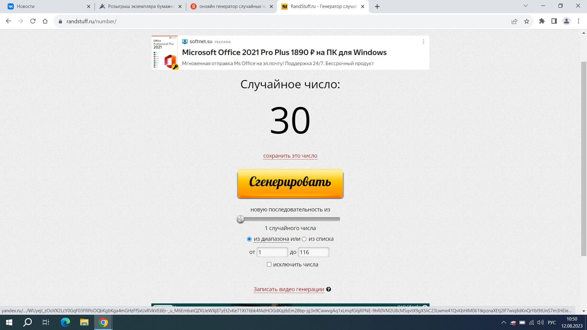 Запускаем онлайн-генератор случайных чисел и вот он - порядковый номер победителя