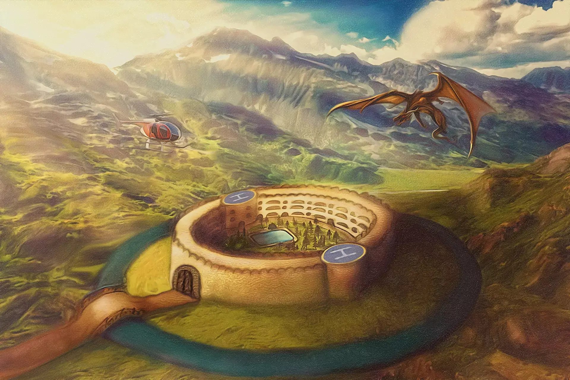 Первым моментом стала крепость дракона. Изначально на территории крепости располагалось множество построек: больницы, церкви, рынки... Но когда стала рисовать, то поняла, что это перебор. Подобная крепость у меня есть в книге Хранители перехода, в первой части. Поэтому часовня, больница, ясли и учебные классы, ушли в первые этажи.