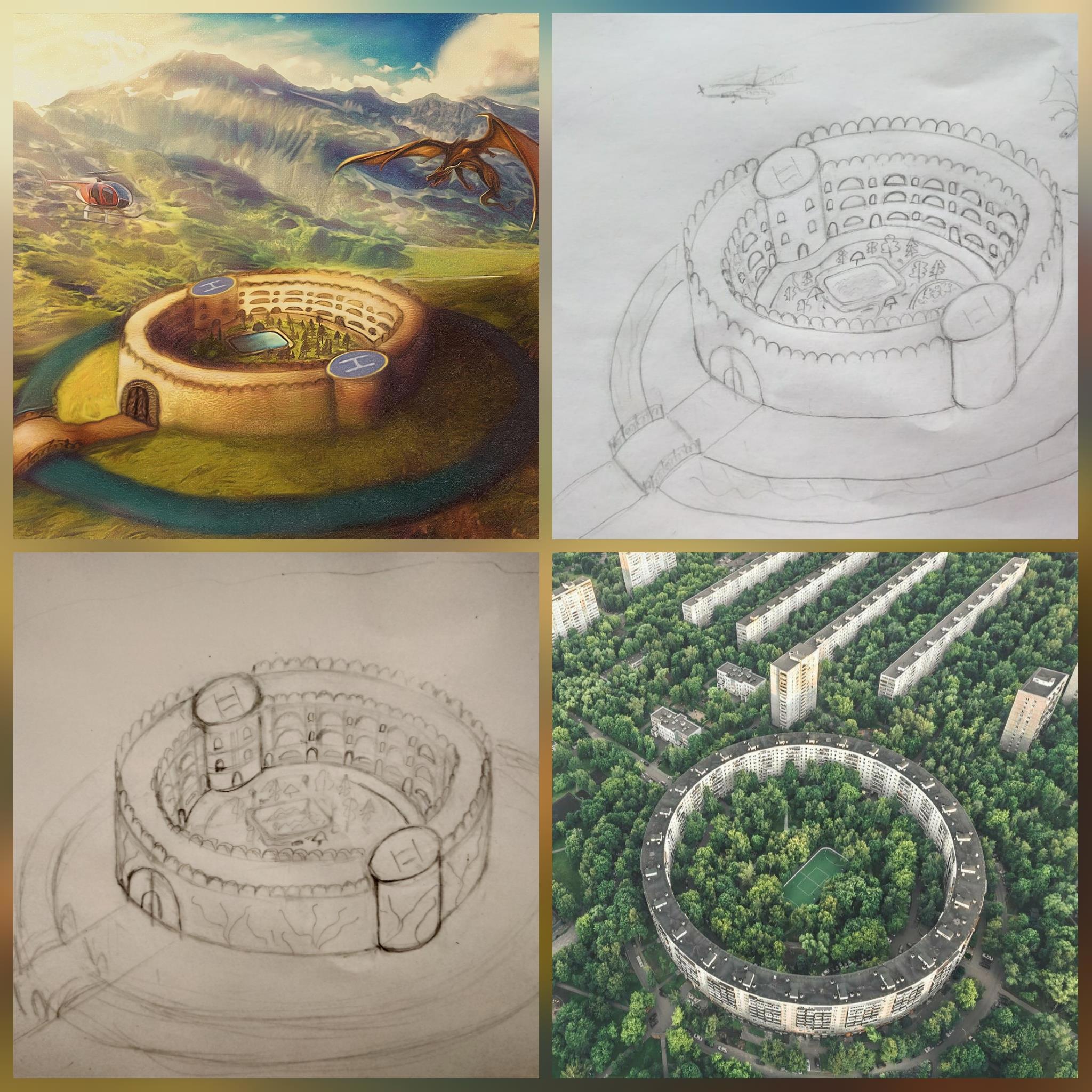 Я начала искать круглые жилые комплексы с внутренними двориками. Именно они и стали прототипами для создания мистической крепости.