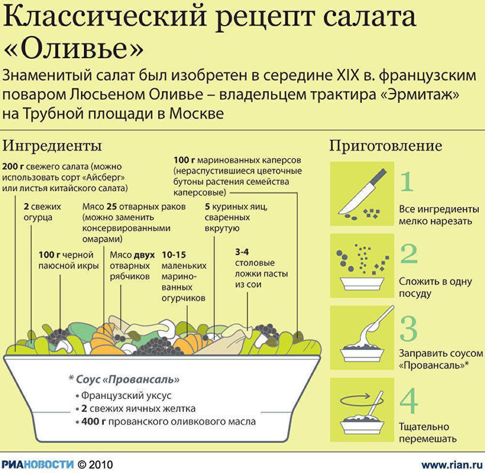С тех пор россияне по праздникам с удовольствием едят картофельный салат, изобретенный безвестным поваром по приказу Сталина, и искренне верят, что это и есть салат оливье.