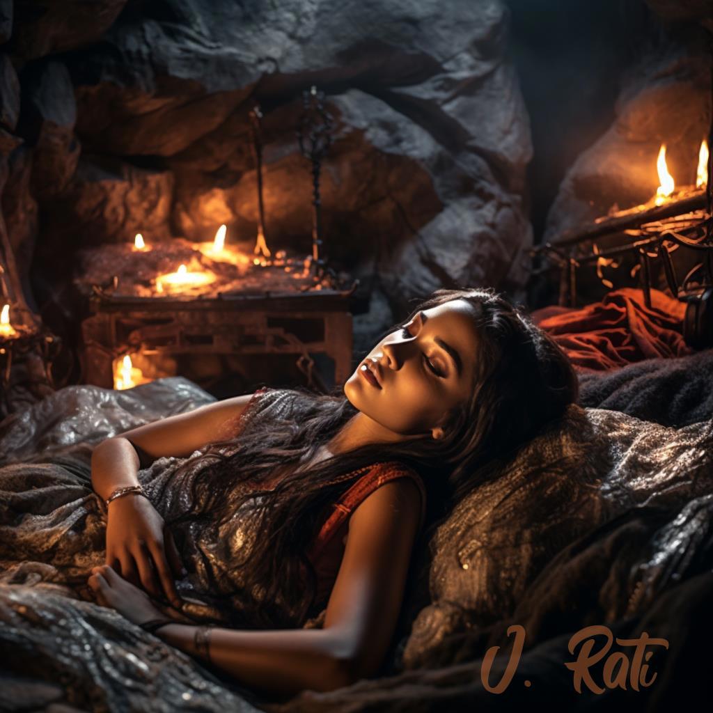 Комнату заполнял легкий дым, здесь он не резал глаза и не разъедал внутренности, как в пещере старика, и не выкидывал в эйфории из тела, как на поляне. Легкий приятный аромат дурманил и расслаблял. Мирай быстро провел взглядом по небольшому помещению. Грубая мебель смотрелась довольно уютно в свете небольшой жаровни. Там, вместо углей, отсвечивала ровным блеском прозрачная жидкость, из нее торчало несколько толстых фитилей, их ровное пламя освещало комнату. Взгляд скользнул дальше и перешел на широкую кровать у дальней стены, тяжелая шкура, принадлежавшая некогда пустынной ящерице, сползла на пол и открыла обнаженное девичье тело. Смуглая кожа еще сохранила на себе россыпь капелек пота. В них гуляли отблески огня, изящная ручка свесилась вниз, так что тонкие пальцы касались блестящих чешуек и слегка подрагивали во сне. Мягкие плечи и точеный изгиб спины были прикрыты покрывалом темных слегка спутанных волос, а дальше… дальше глазам пришлось пройтись и по заманчивому рельефу подтянутых ягодиц и стройных ног.