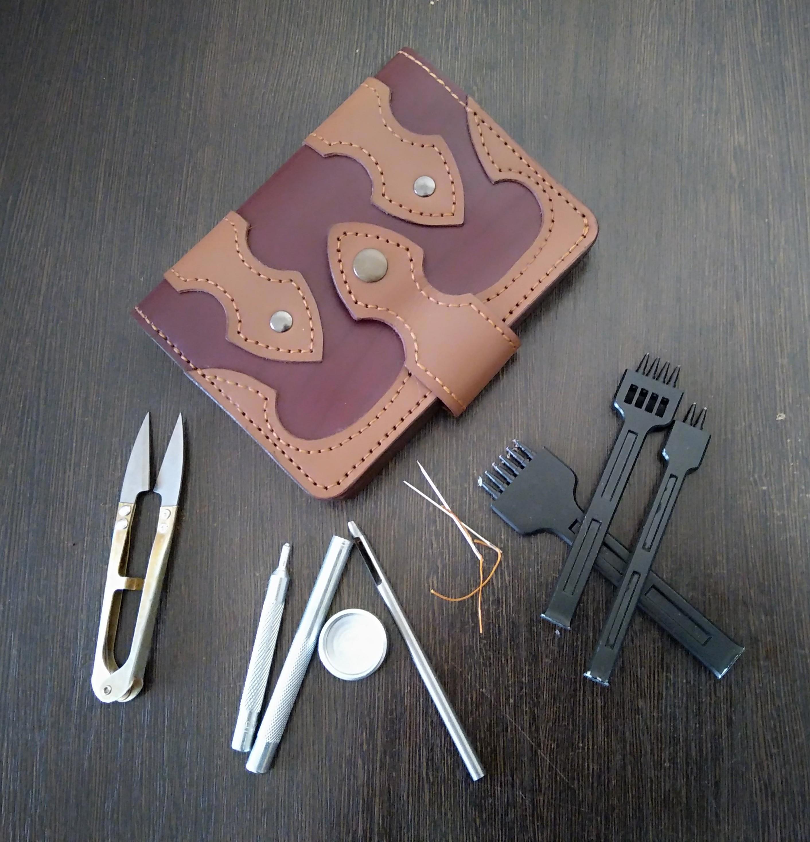 - Шило, шорные иголки, моток ниток такого же или близкого цвета, заклепки... Наверное, латунные... Инструмент для установки... Резцы по дереву есть у вас?