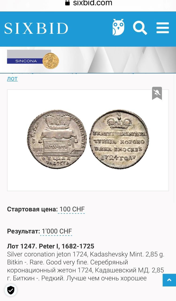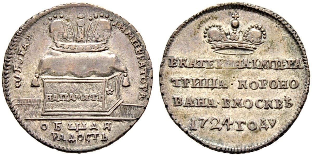 Коронационный жетон Екатерины 1 в серебре. Бывают ещё в золоте, а новоделы - ещё и в меди:)