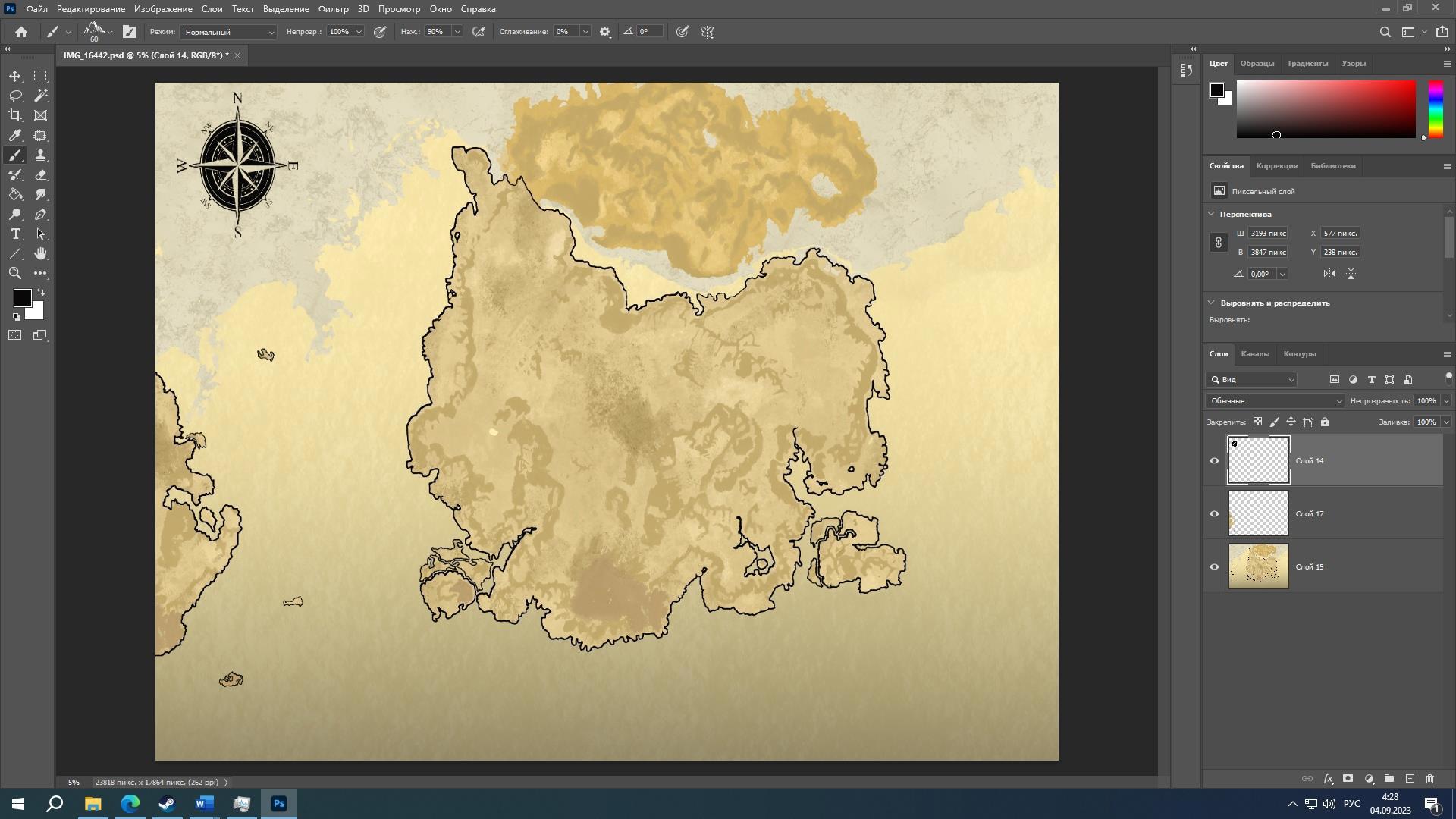 Отдыхая от редактуры, начал потихоньку рисовать карту к своему циклу. Размер в пикселях впечатляющий, даже очень. По ходу работы буду заливать сюда посты, а её предстоит о-о-очень много