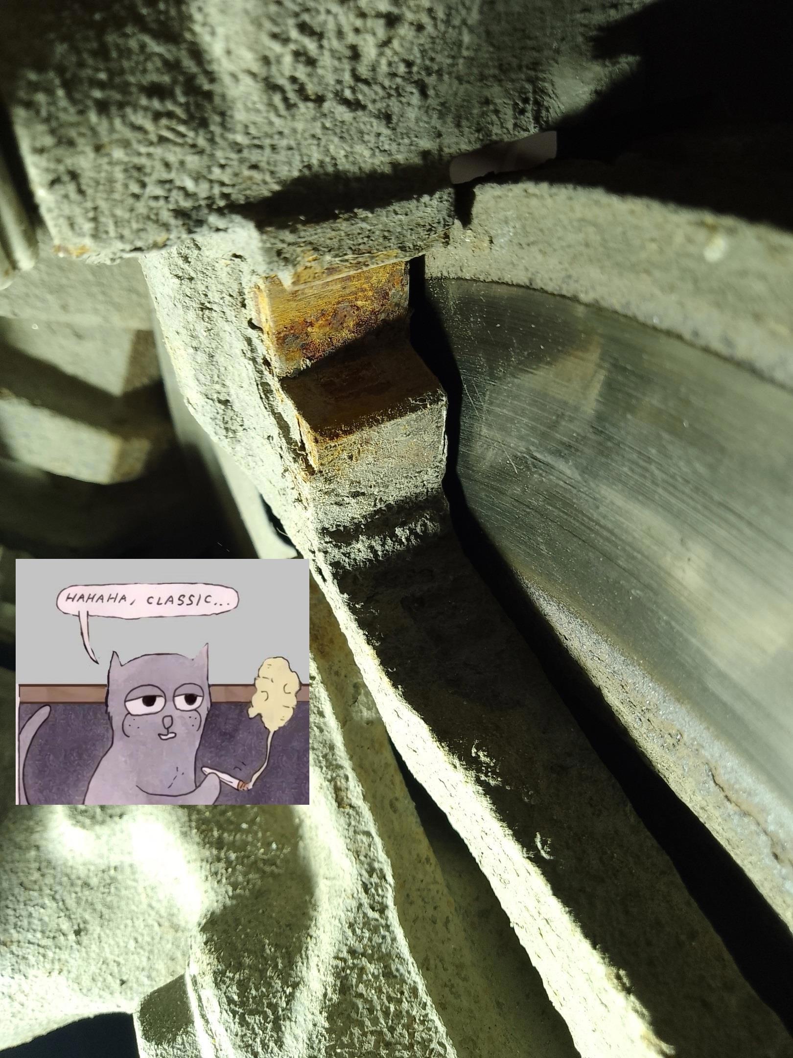 Почему внутренняя изношена сильнее? Вот фиг знает. Грязь была внутри, но она работала. Или не работала, но как тогда износилась? Либо ее придавливало и она постоянно терлась. Фиг знает. Для меня это осталось тайной.
