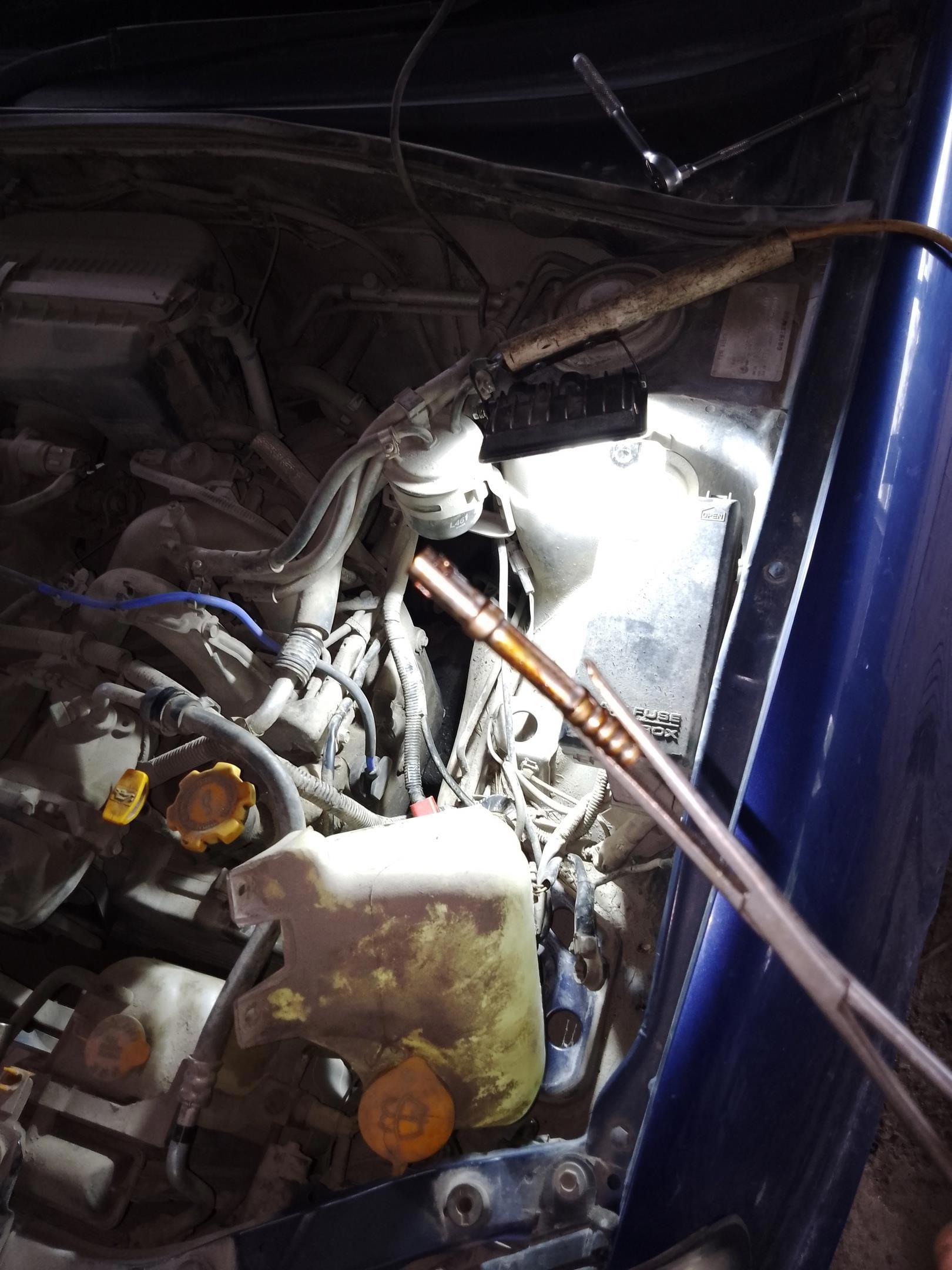 Извлечь удалось только медецинским зажимом. Ставлю и прокладываю провод, снимаю второй, а новый опять не лезет! Да чтож такое то! Откидываю бачок омывателя, делаю фото, и вижу там точно такую же картину.