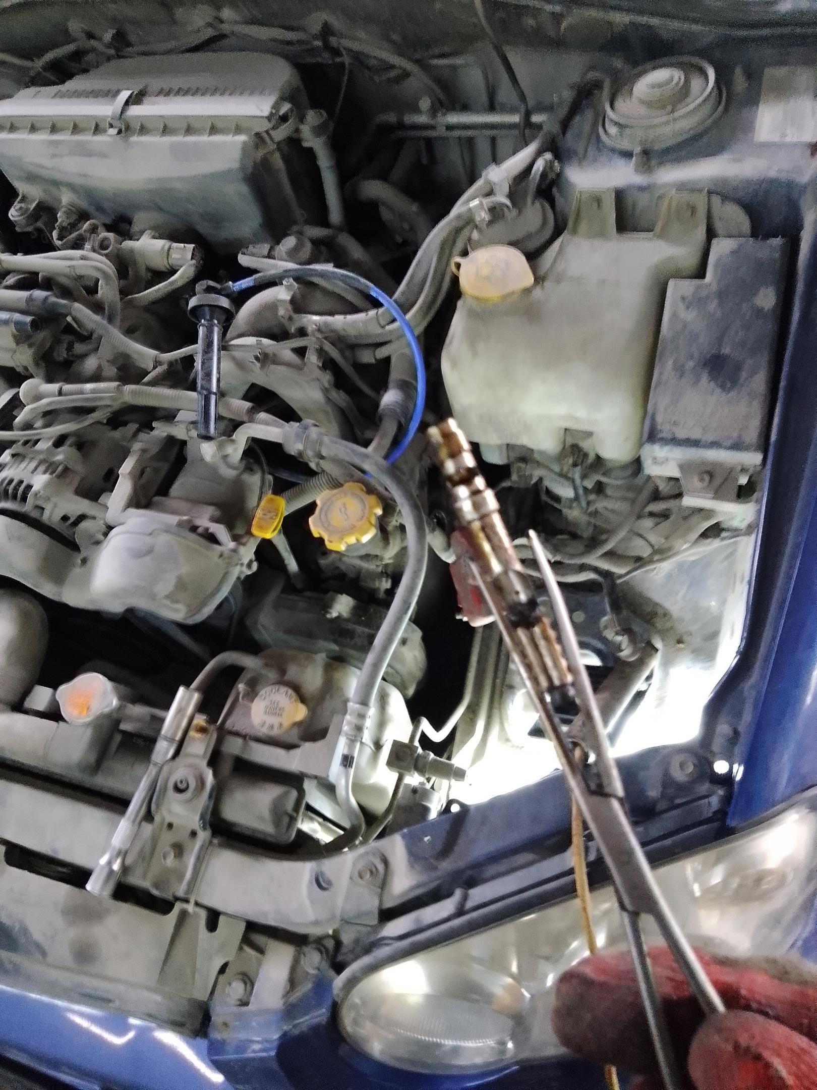 И тут начинаются фокусы. Машина заводится, но работает не устойчиво, на газ не реагирует, идёт чёрный дым. Цепляем комп, и видим угол опережения 15 градусов на холостых. Директор сразу сказал, ставь старый датчик, новый врёт, без лишних слов, так оно и оказалось. Хотя до этого я проверил Датчик Абсолютного Давления, проверил показания датчика температуры охлаждающей жидкости, и всё было в норме. Кроме угла. Вкинул обратно родной, и машина вроде как заработала, но... Не идеально. Отправили покататься, потом ещё раз её прочитаем и посмотрим.