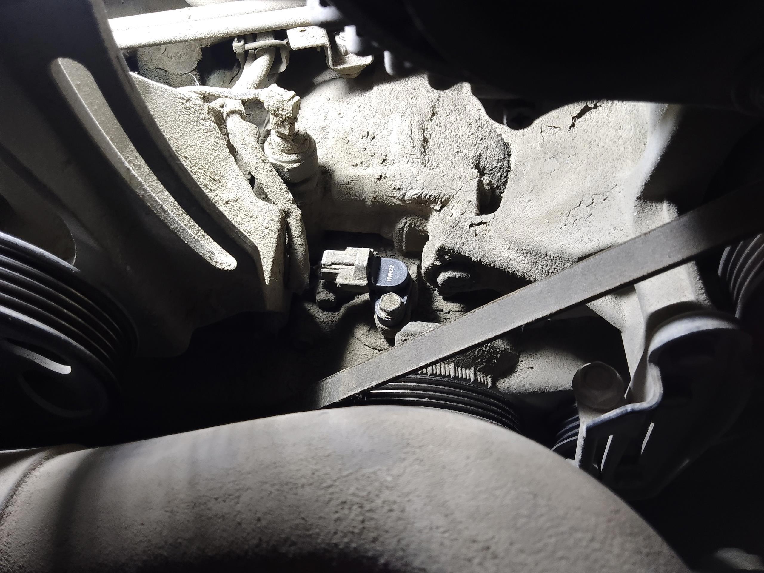 Для этого надо поднять генератор, открутив сверху кожухи. В целом, работы на 5 минут разобрать-собрать. Новый датчик на месте: