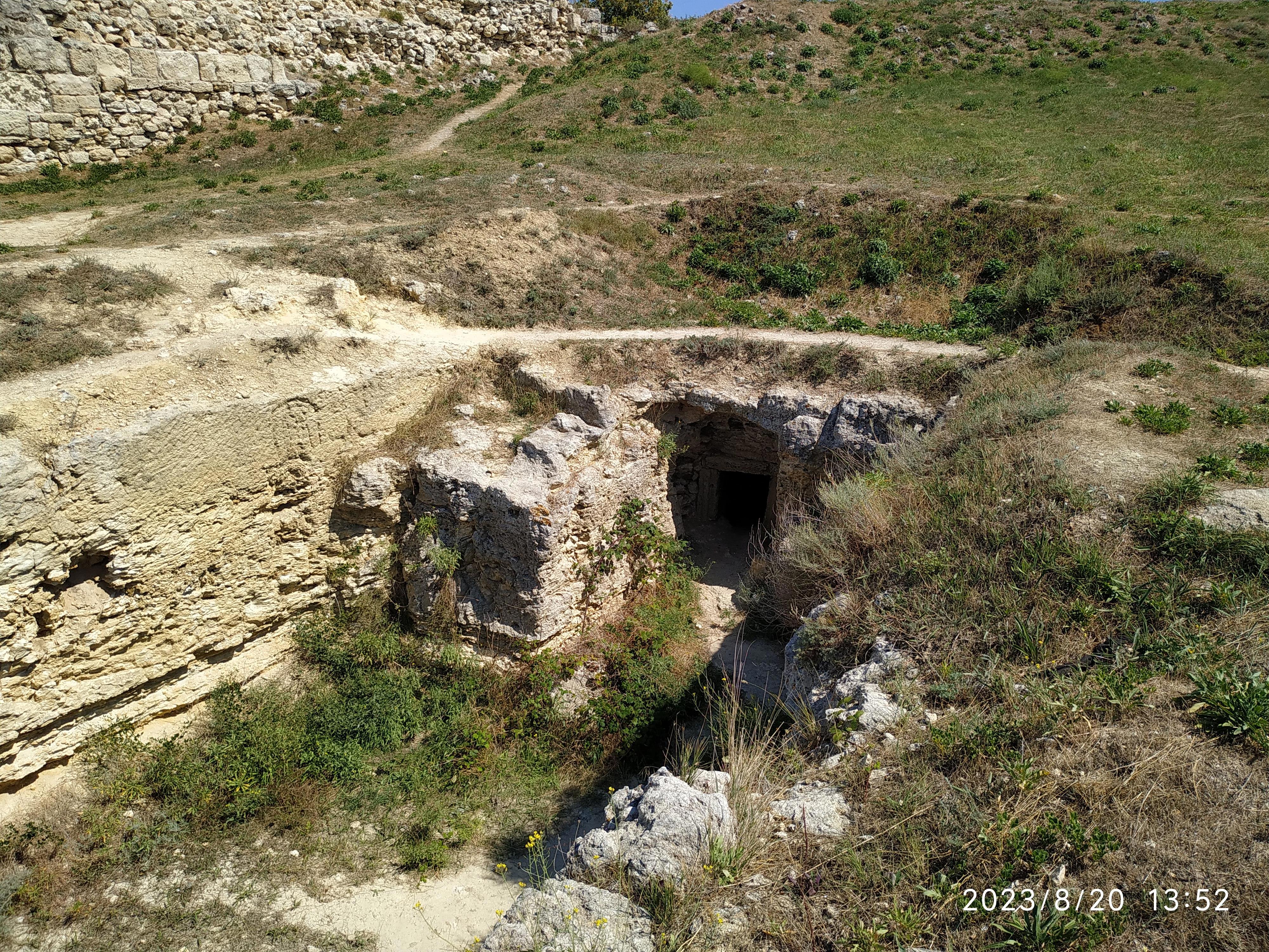 Перед воротами в расселине типичный некрополь. Обычно некрополем становились каменоломни. Разумеется, в книге я использовал эту расщелину.