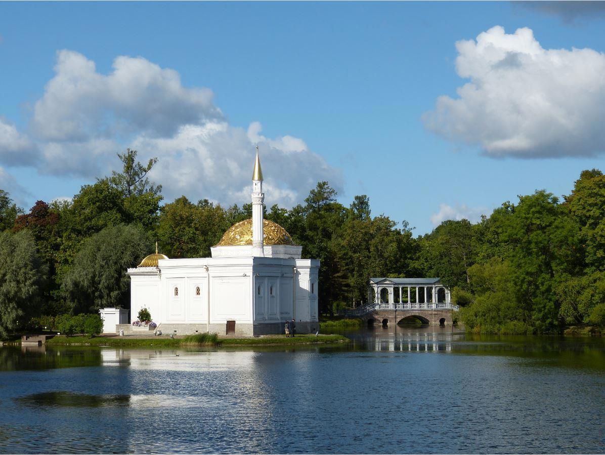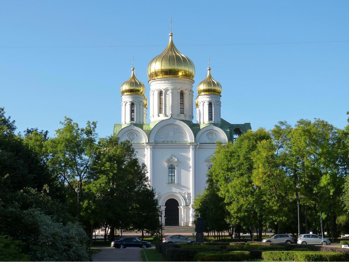 Если идти в тёплое время года от станции Царское Село, то благодаря зелени дорога будет лёгкой и приятной. А попутно встретятся интересные объекты. Вот Екатерининский собор, воссозданный в 2007—2010 годах.