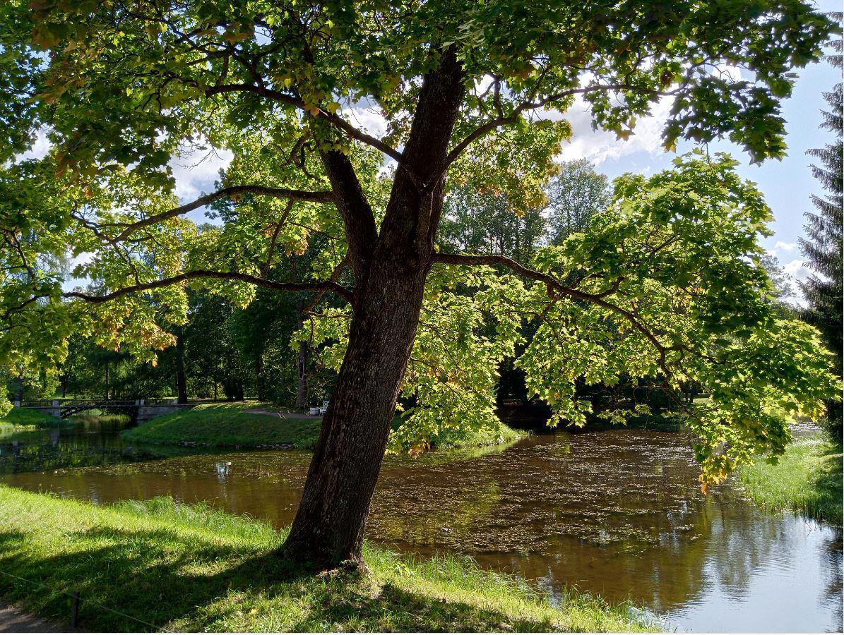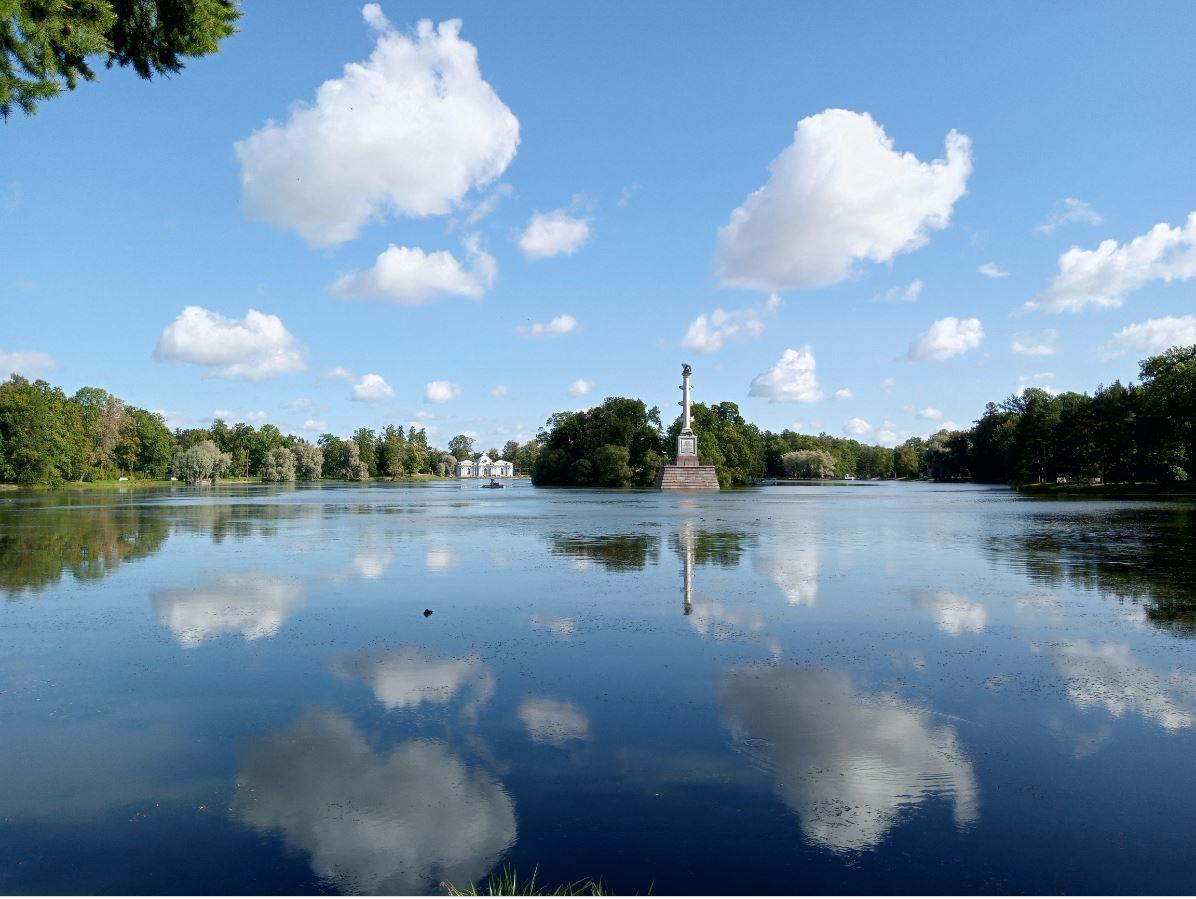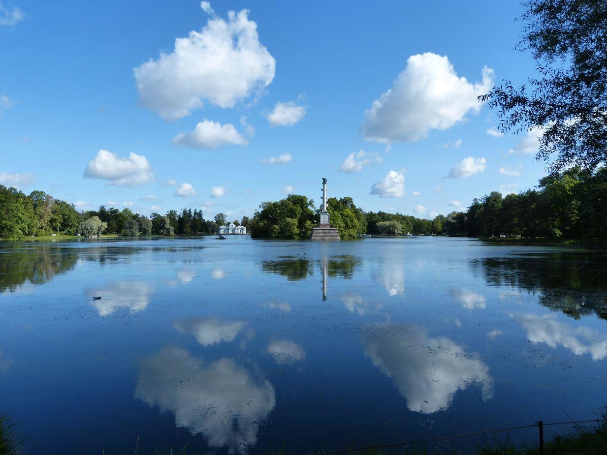 Большой пруд Екатерининского парка. Кучевые облака невероятно красиво отражались в спокойной воде.